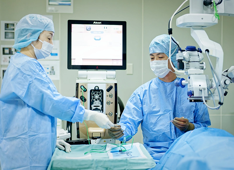 白内障や眼瞼下垂などの手術は、日帰り・入院どちらにも対応しています。身体への負担が少ない点眼麻酔を用い、安全性を最優先に、術前検査から手術後の経過観察まで丁寧にサポートします。